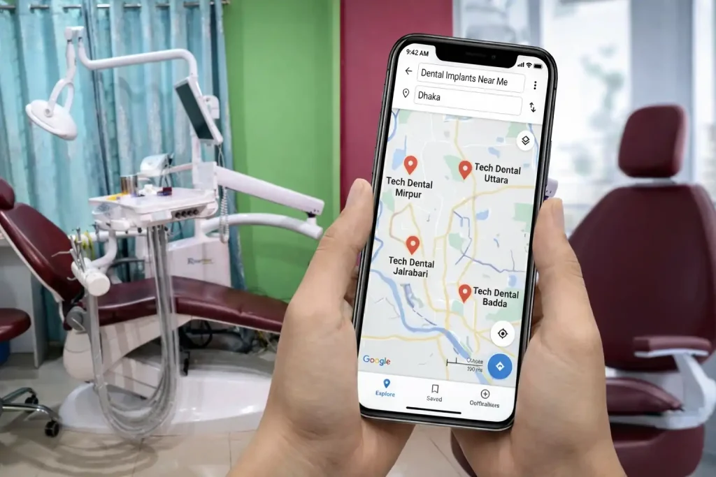 আপনার আশেপাশে কি ভালো কোনো ডেন্টিস্ট খুঁজছেন? ঢাকার সেরা ডেন্টাল সেবা নিয়ে টেক ডেন্টাল কেয়ার আছে আপনার পাশেই। বাংলাদেশের বৃহত্তম ডেন্টাল চেইন হিসেবে আমরা নিশ্চিত করছি আধুনিক প্রযুক্তি আর অভিজ্ঞ ডাক্তারের নিবিড় তত্ত্বরুট ক্যানাল, ব্রেসিস কিংবা ইমপ্ল্যান্ট—আপনার দাঁতের যেকোনো সমস্যায় নির্ভয়ে চলে আসুন ব্রাঞ্চে।